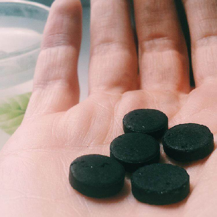 Sutrinkite tris aktyvuotos anglies tabletes į smulkius miltelius. Įpilkite 1 valgomąjį šaukštą virinto ir atvėsinto vandens. Tada gautą pastą užtepkite ant odos. Leiskite išdžiūti. Kruopščiai nuplaukite.