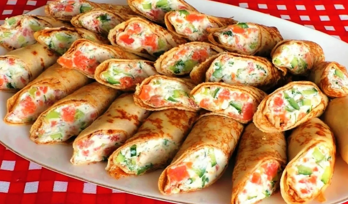 Kai įdėsite įdarą į visus blynus, gausite puikų užkandį.