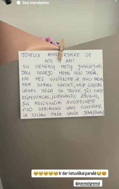 Socialiniuose tinkluose Ą. Misiukevičius paviešino, kad šalia didžiulės puokštės, jis gavo lietuviškai, o ne prancūziškai, parašytą laiškelį. Pasirodo, Jeanas pasinaudoju ir „Google“ vertėju.