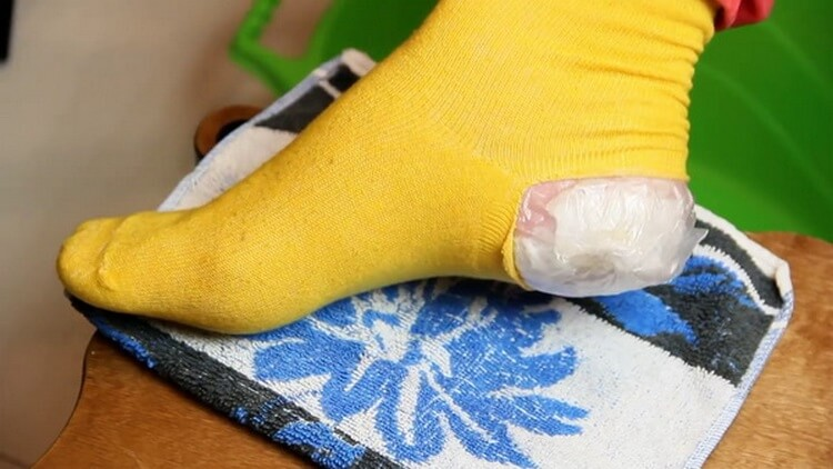 Uždenkite maistine plėvele.Šią procedūrą atliekame kiekvieną dieną tris dienas, tepdami naują tepalo sluoksnį tiesiai ant senojo.