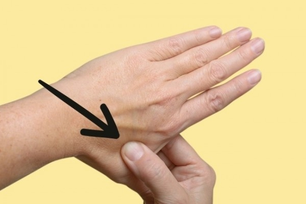 Paspauskite jį, atlikite sukamuosius judesius, jei norite, paspauskite stipriau. Po pusės minutės pasijusite geriau!