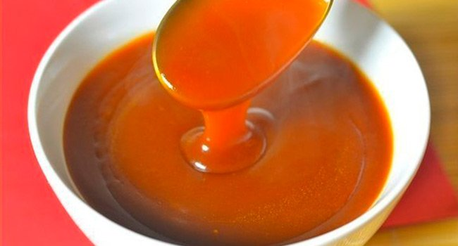 Sumaišykite visus ingredientus ir uždėkite puodą ant stiprios ugnies. Nuolat maišykite. Kai mišinys užvirs, supilkite krakmolą, praskiestą vandeniu. Tada maišykite, kol mišinys sutirštės.