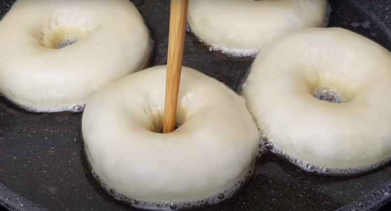 Sušildykite keptuvę su aliejumi. Kepkite spurgas ant vidutinės ugnies iš abiejų pusių. Produktai turėtų plaukti ir neliesti dugno.
