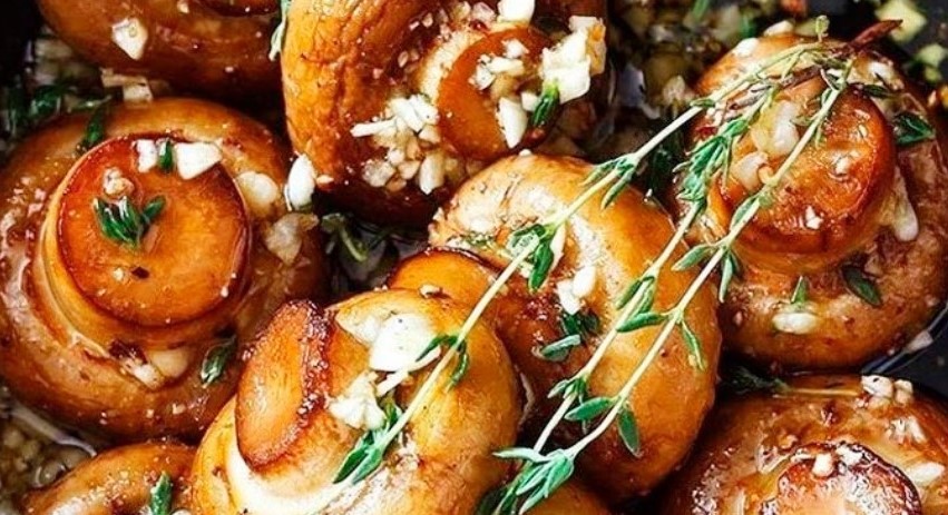 Grybai yra išdėstyti ant patiekalo, laistomi padažu, apibarstyti kapotais žalumynais ir patiekiami prie stalo su skirtingais šoniniais patiekalais. Labai skanūs grybai derinami su bulvėmis, keptomis orkaitėje. Todėl įdėkite į orkaitę 2 formas – į vieną grybą, antroje bulvėje.
