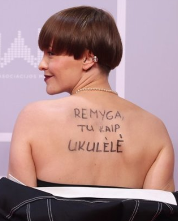 Atlikėja Bjelle nustebino visus pasiųsdama žinutę Remigijui Žemaitaičiui, kuri buvo parašyta ant jos nugaros.