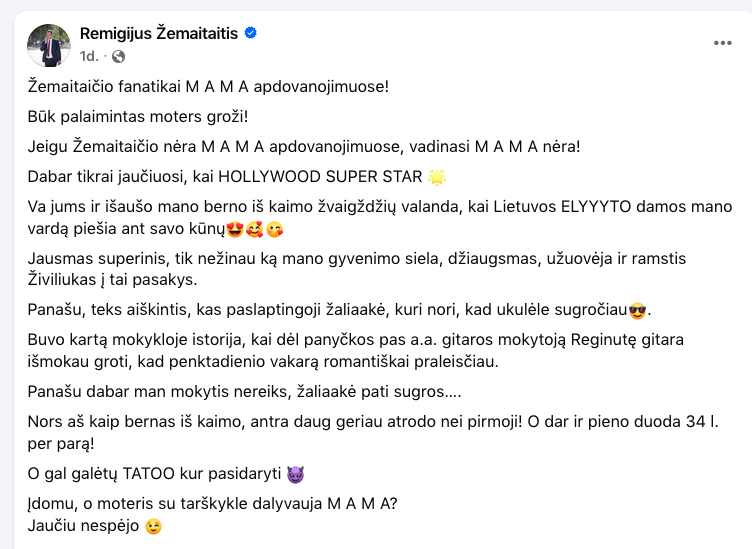 Į atlikėjos žinutę netruko sureaguoti ir pats R. Žemaitaitis.