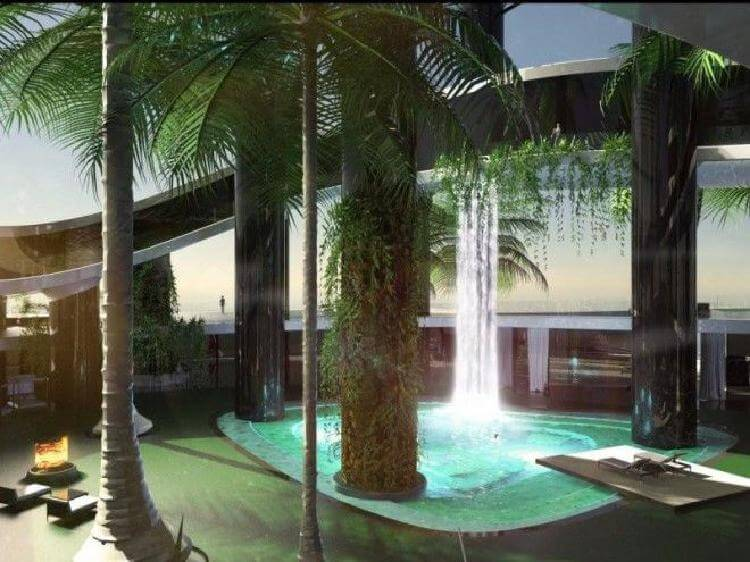 Yra palmės, vertikalūs sodai ir kriokliai.