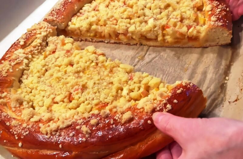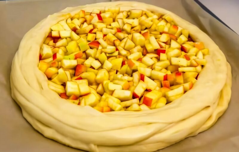 Vaikystės aromatas: sultingas obuolių pyragas su uogiene, kuris tirpsta burnoje.